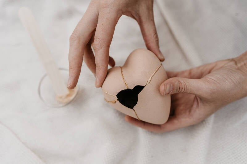Het product waar Open your heart Studio mee is begonnen is The Heart Ritual, geïnspireerd op de Japanse Kintsugi Filosofie. The Heart Ritual ontvang je in een mooie giftbox, gewikkeld in een handgemaakte katoenen doek. In de box zit het hart, gemaakt van keramiek, samen met goudlijm en een instructie boekje met de gebruiksaanwijzing.