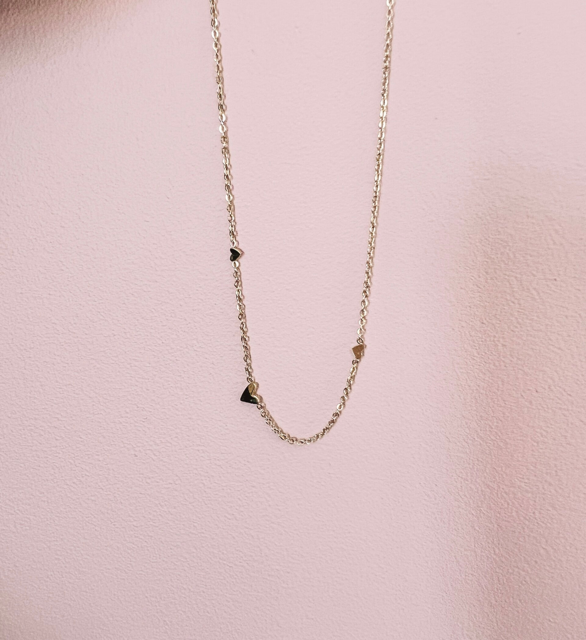 Ook verkrijgbaar in zilverkleur: Bazou Ketting met 3 kleine hartjes - zilver (RVS)