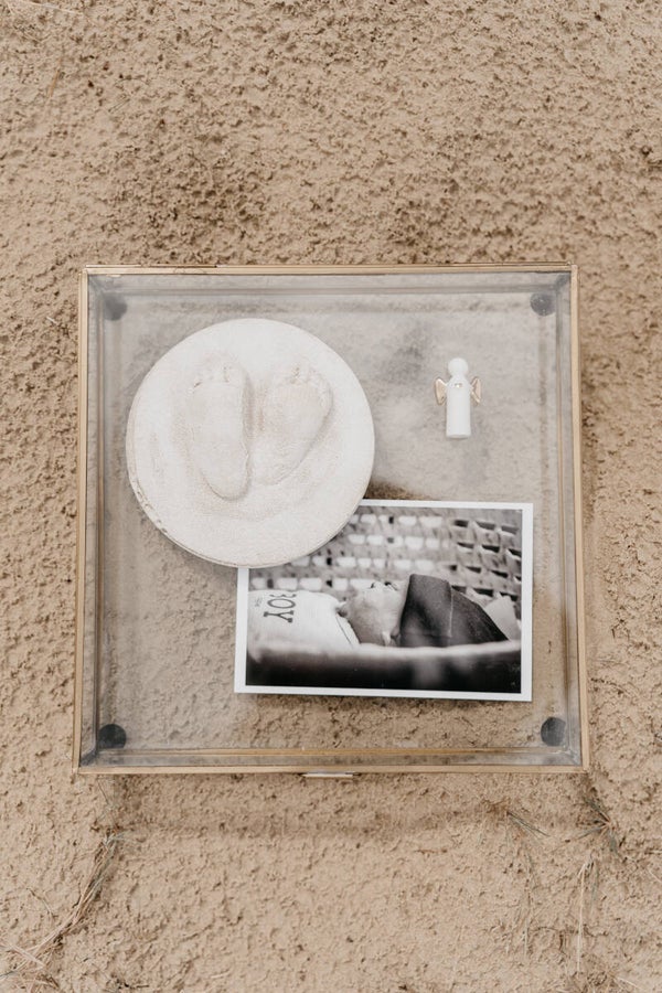 Dit mooie glazen doosje is bedoeld om dierbare spulletjes in te bewaren. Denk aan voetafdrukjes, het geboorte of rouwkaartje, misschien heb je zelfs haartjes mogen bewaren. Je kunt er de mooiste tastbare herinneringen in kwijt.