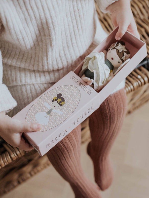 Lief klein feetje Mathilda van Picca Loulou wordt geleverd in een kleine giftbox. Haar vriendjes noemen haar Mathy en ze woont boven de wolken want het leven is als een sterretje in haar haar. Het dooft nooit.