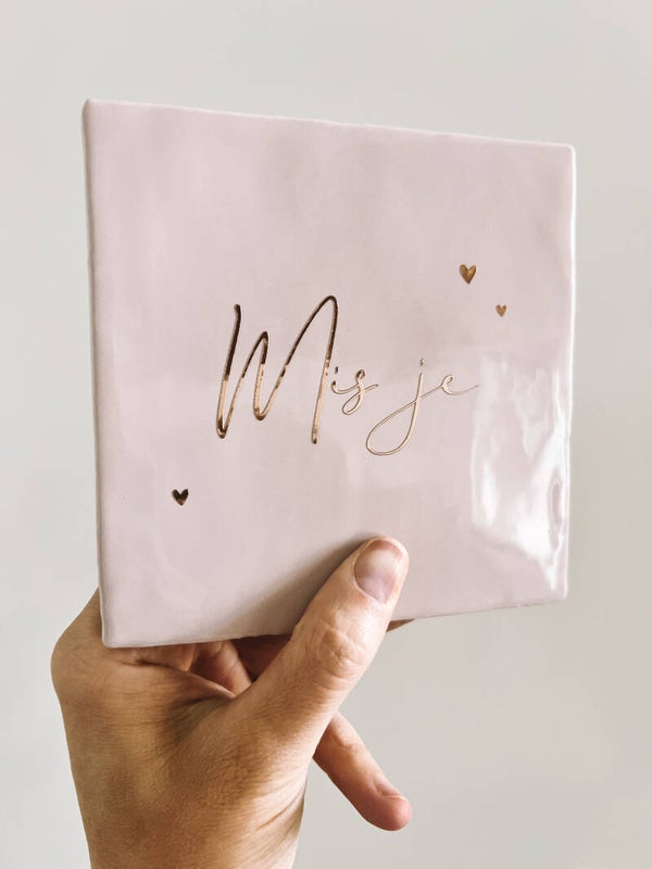 Een lief tegeltje om bijvoorbeeld bij een gedenkplekje neer te zetten met de tekst: Mis je.